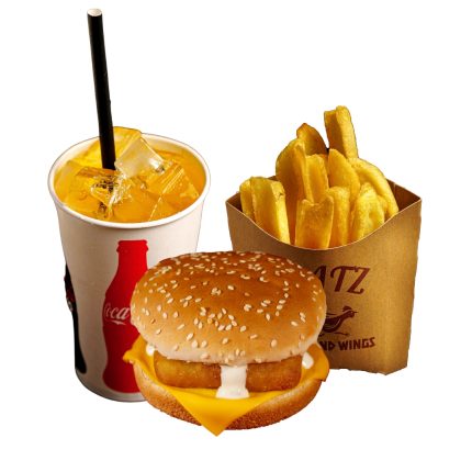 Mini pui burger 160g, cartofi 100g, bautura 250ml
