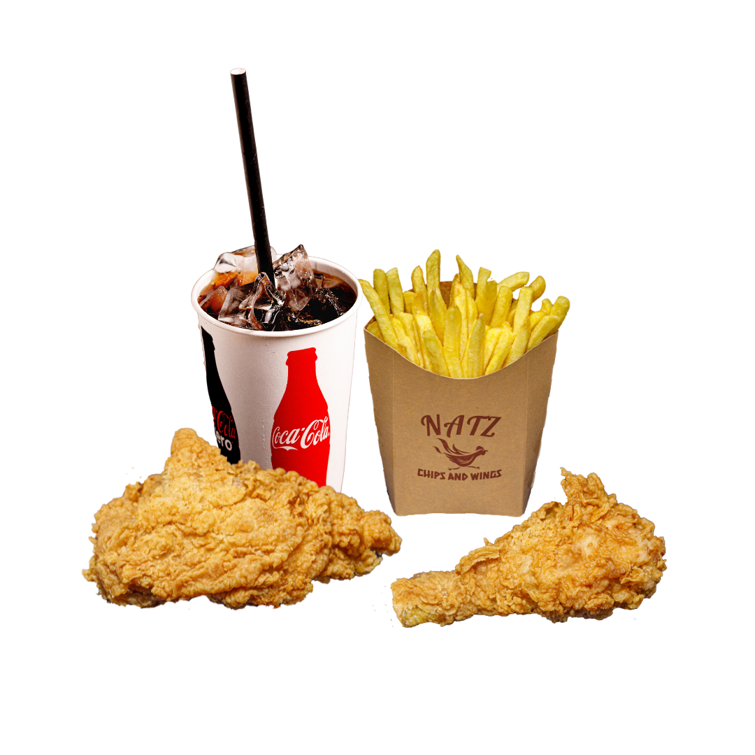 1 pulpa de pui superioara nepicanta 150g, 1 copanel de pui picant 100g, cartofi 100g, bautura 400ml