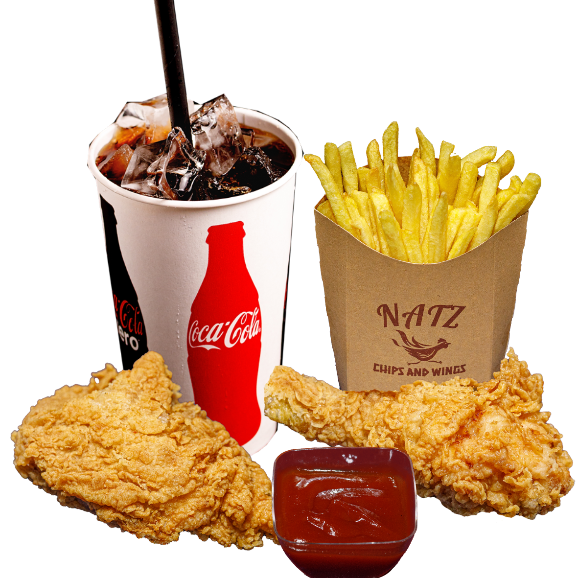 1 pulpa de pui superioara nepicanta 150g, 1 copanel de pui picant 100g, cartofi 150g, bautura 500ml, sos 60g
